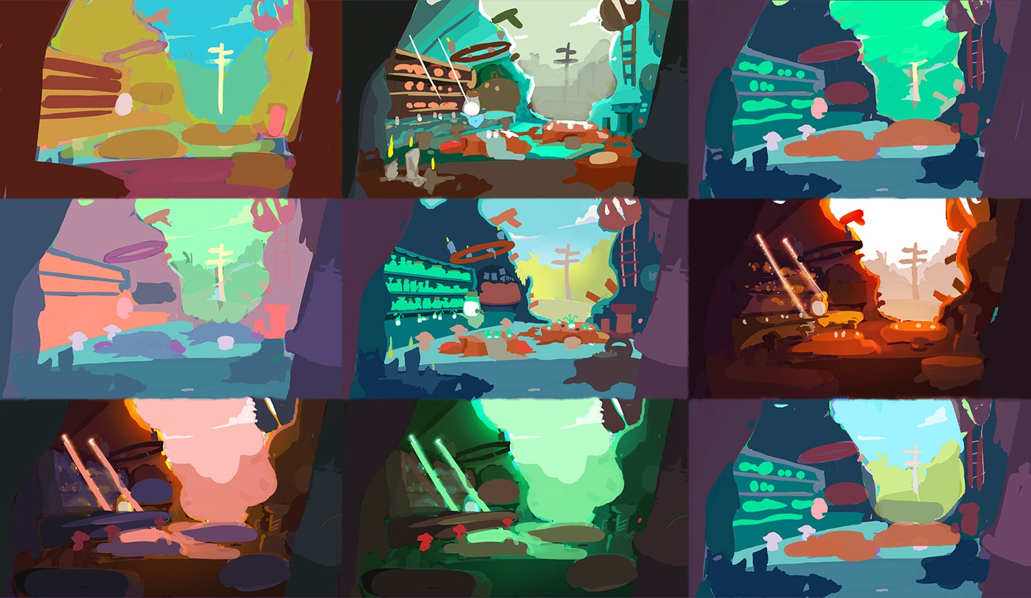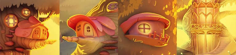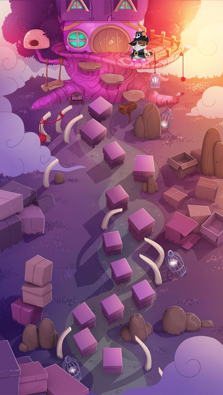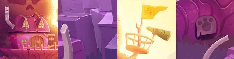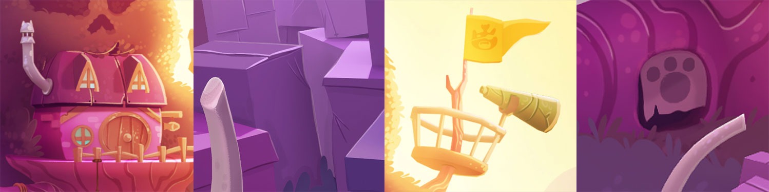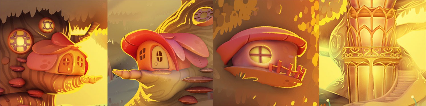 Backgrounds Design (concept art and overpaint) with a narrative base for BW3 saga mobile game. 3D done by Julio López.