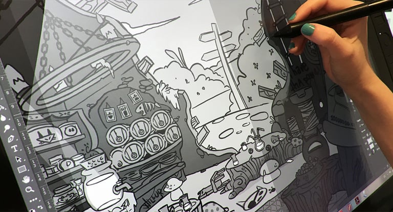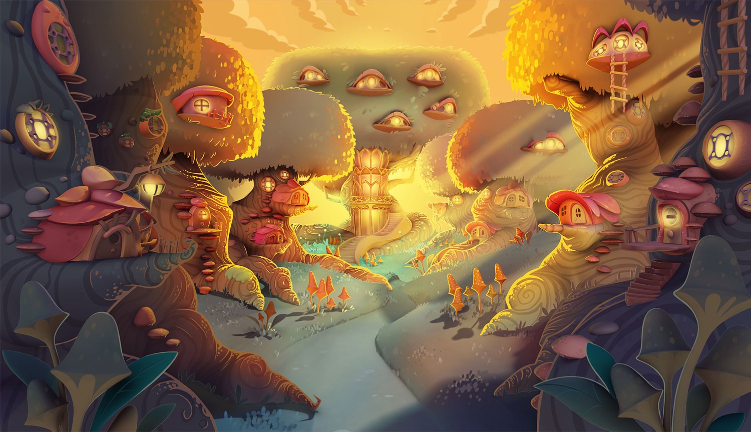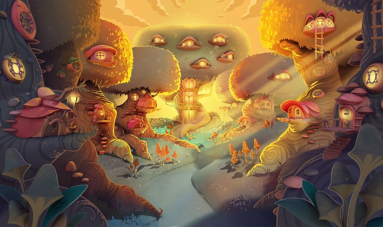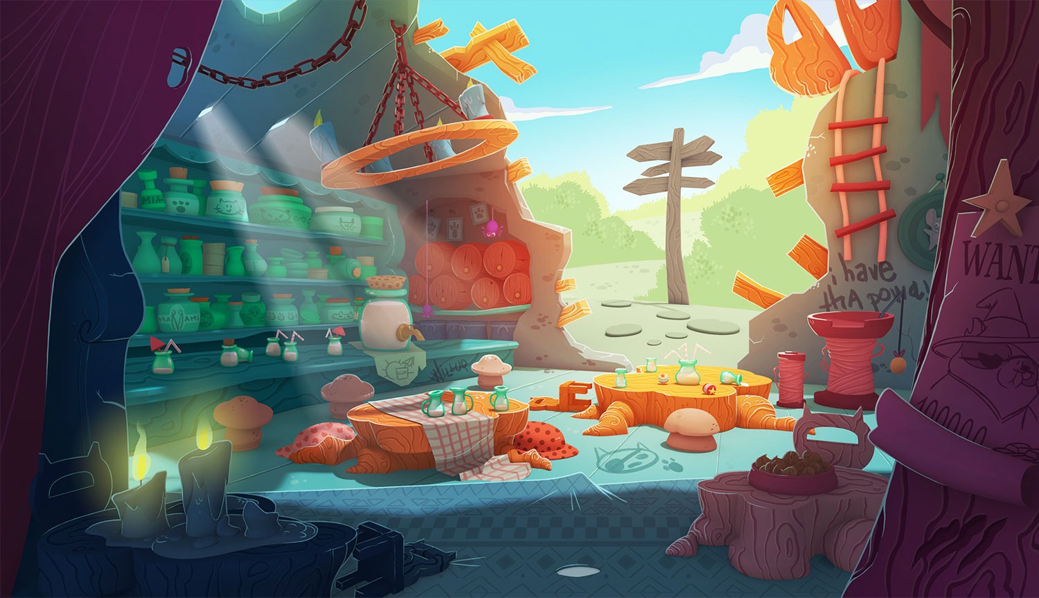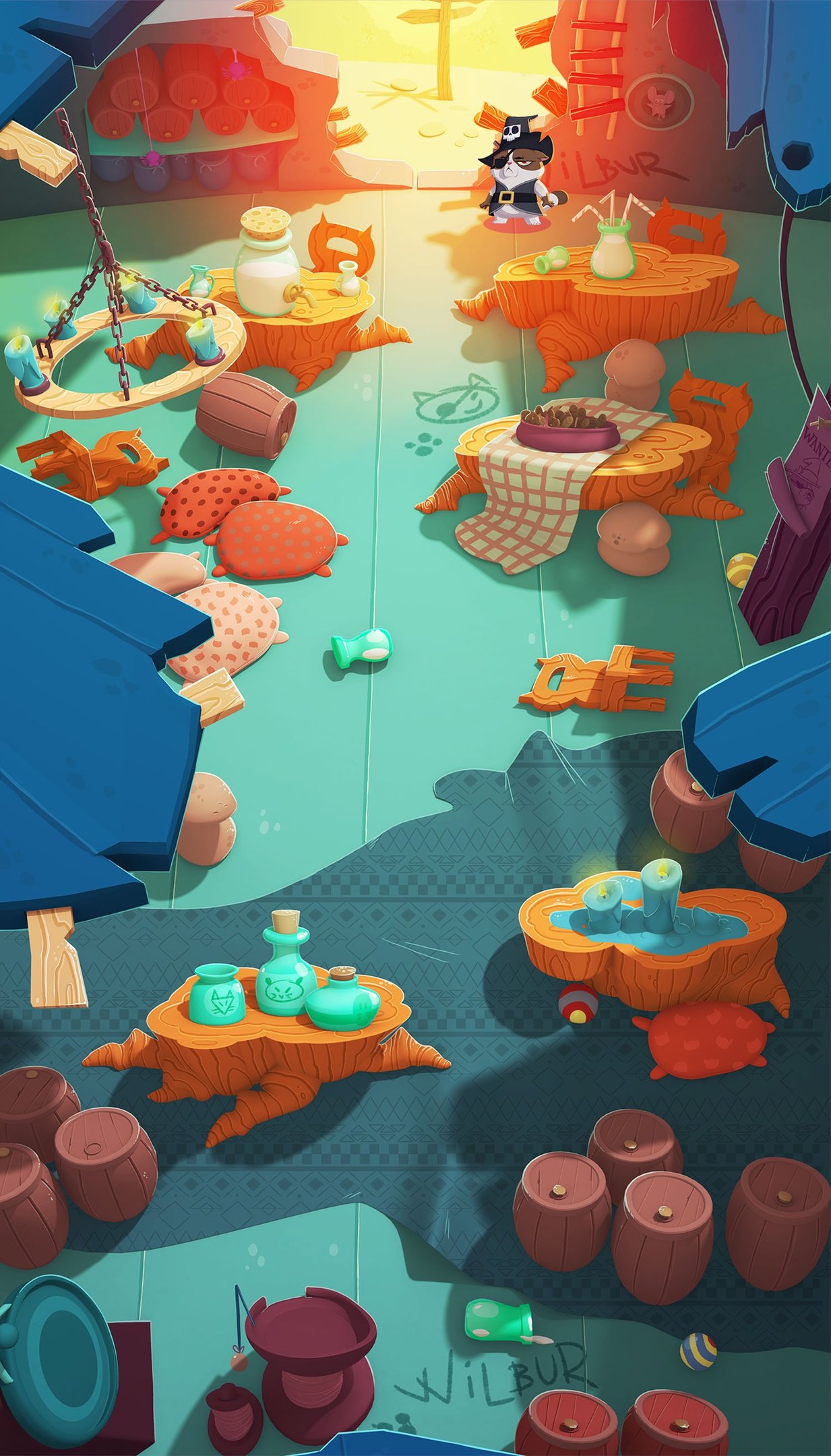 Backgrounds Design (concept art and overpaint) with a narrative base for BW3 saga mobile game. 3D done by Julio López.