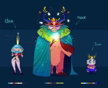 Character design of Eloïse, Irvin and Möck.