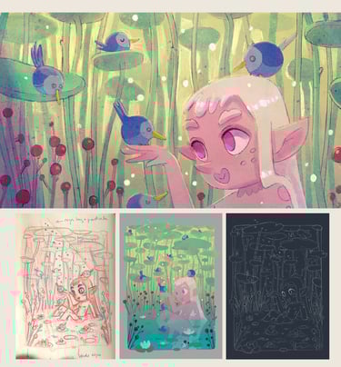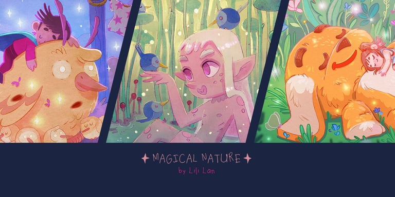Personal project, 2021Magical illustrations, created with Procreate and Adobe photoshop, and printed by Moo.