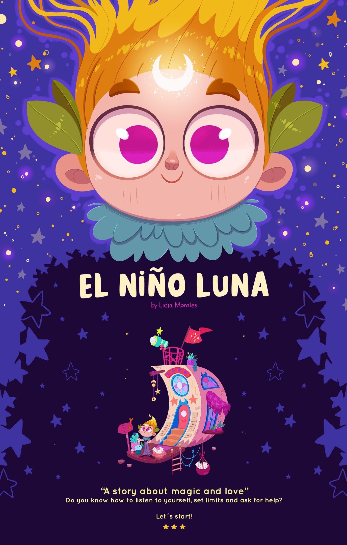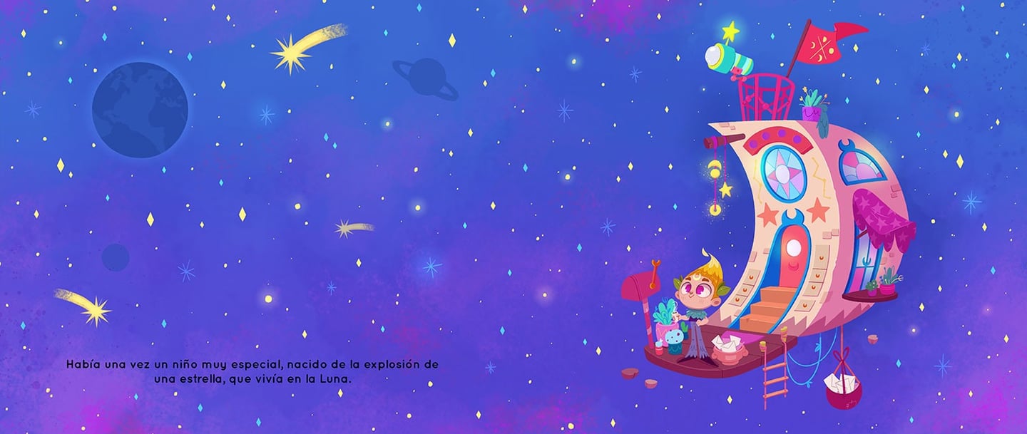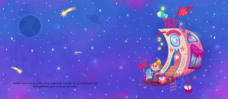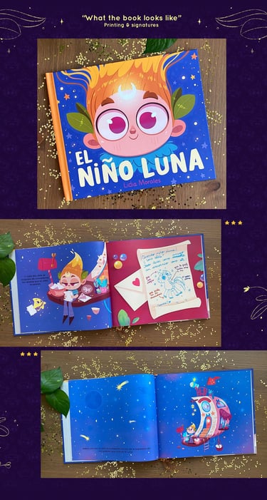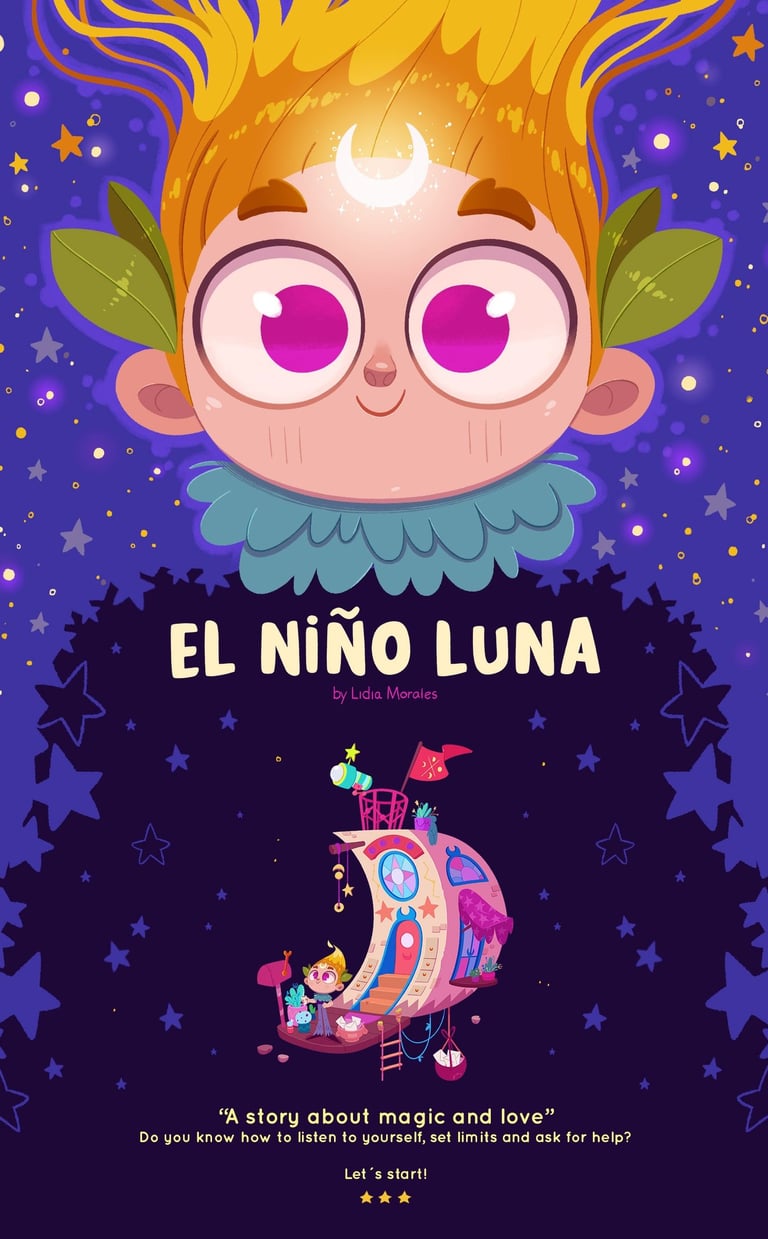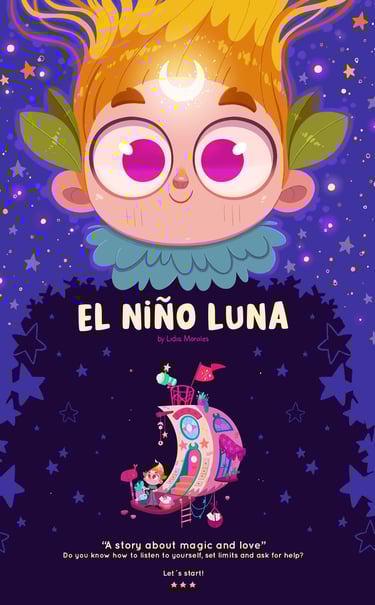 "El Niño Luna" (in Spanish) / "The Moonchild" (in English) is a children's pictures book that I´ve written, illustrated and self-published, which through magic tells us how important it is to know how to listen to ourselves, set limits and ask for help when we need it.