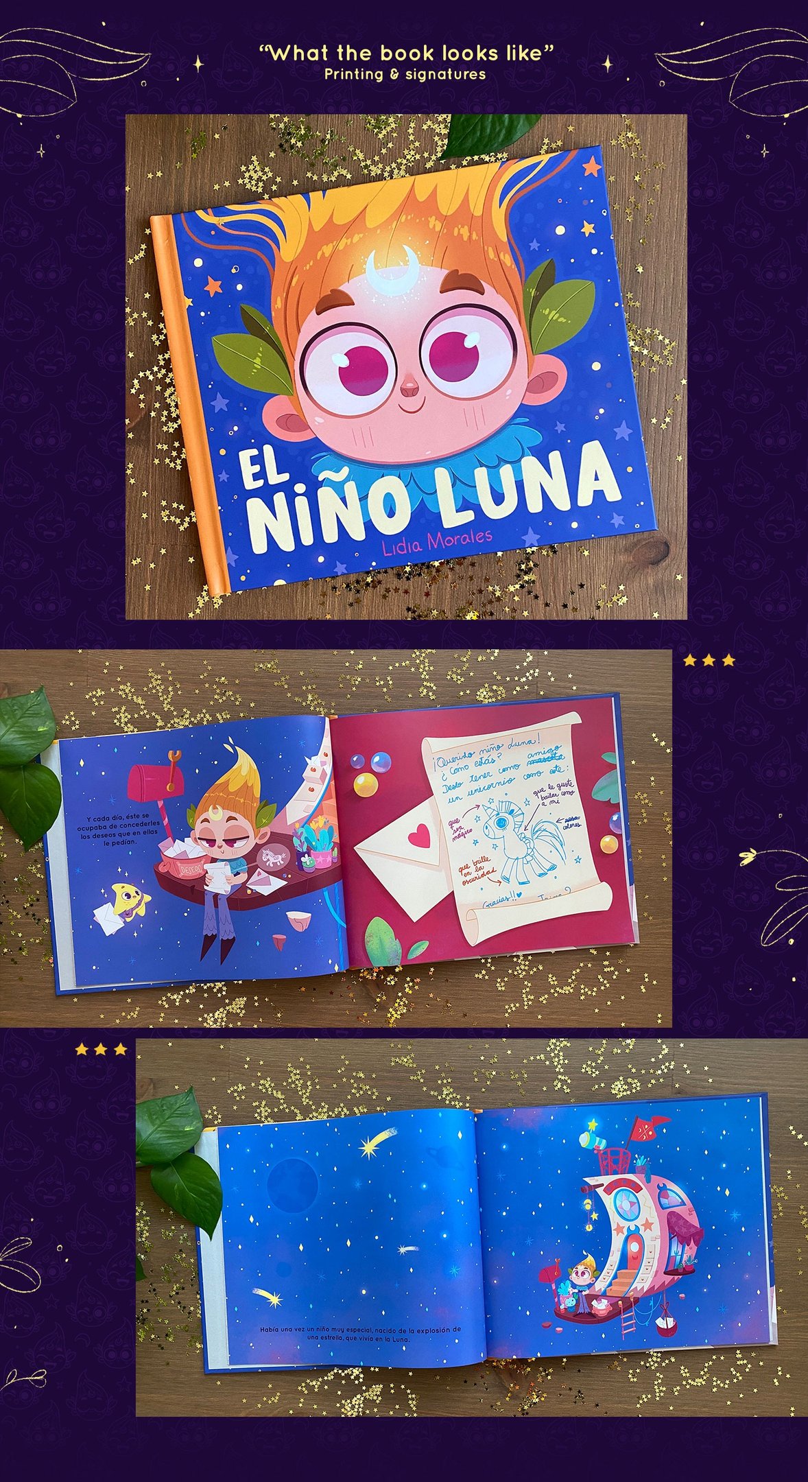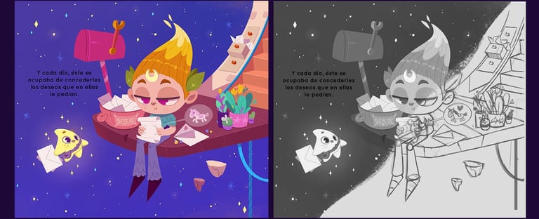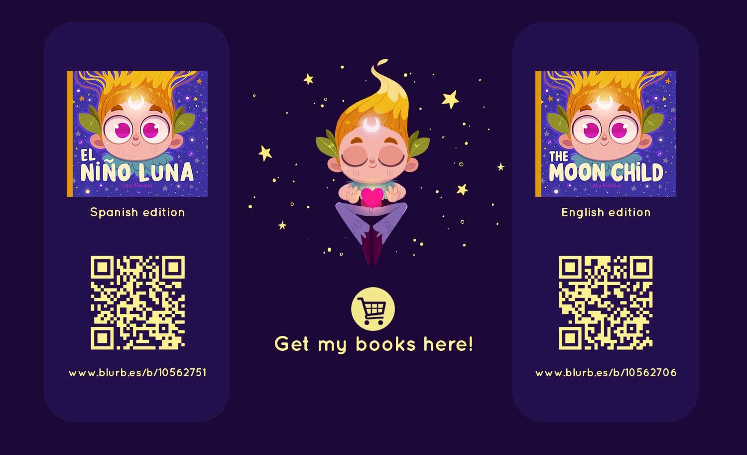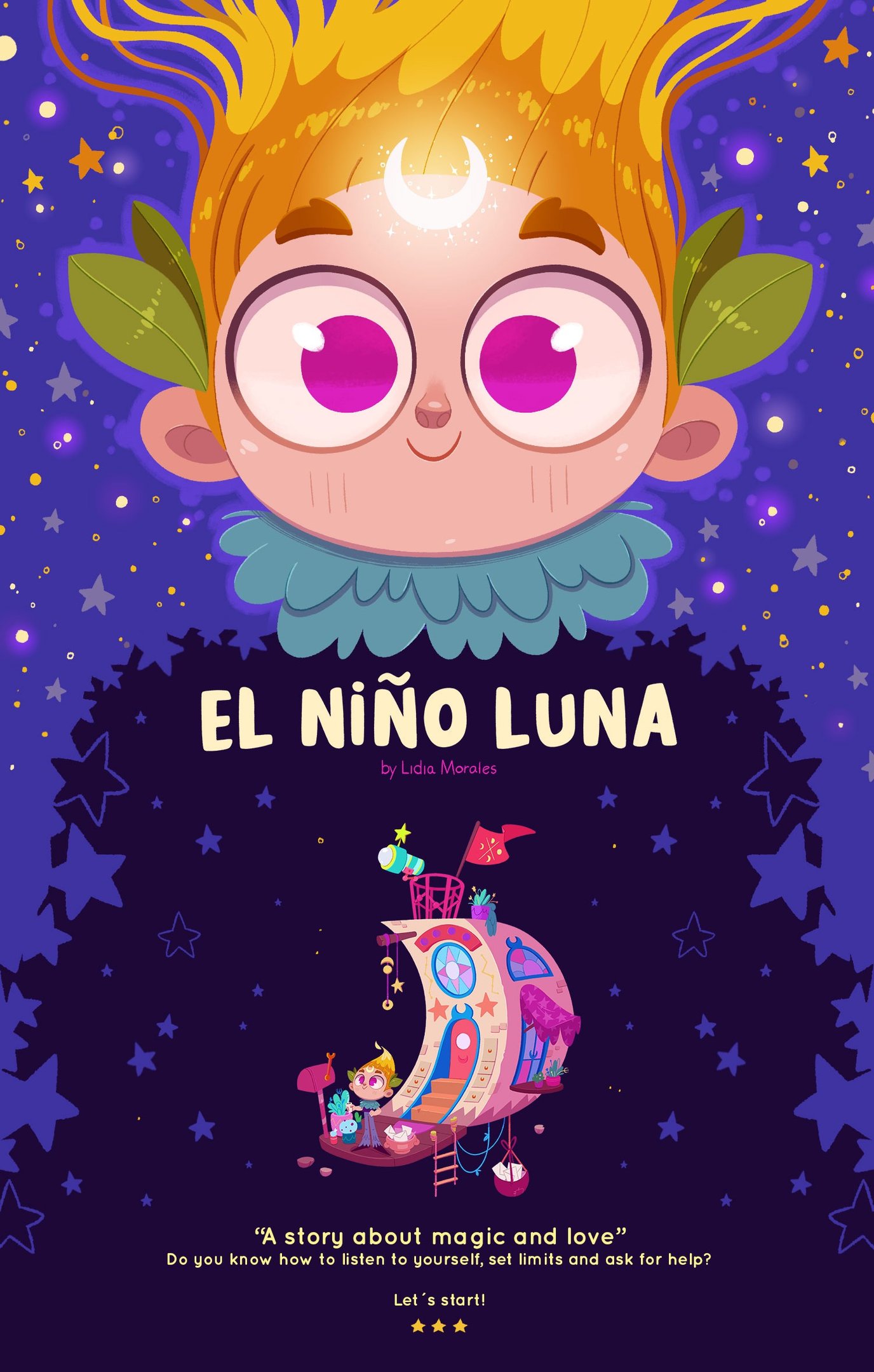 "El Niño Luna" (in Spanish) / "The Moonchild" (in English) is a children's pictures book that I´ve written, illustrated and self-published, which through magic tells us how important it is to know how to listen to ourselves, set limits and ask for help when we need it.