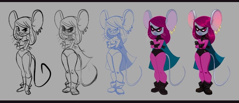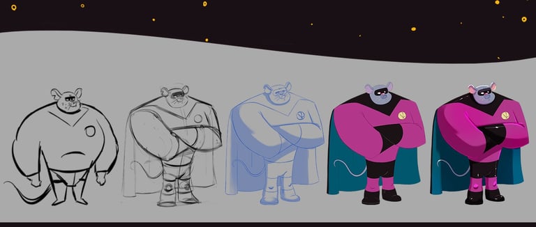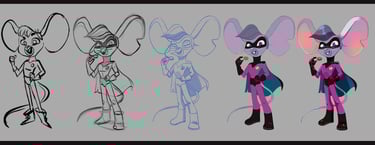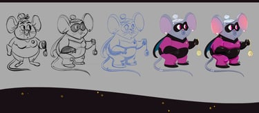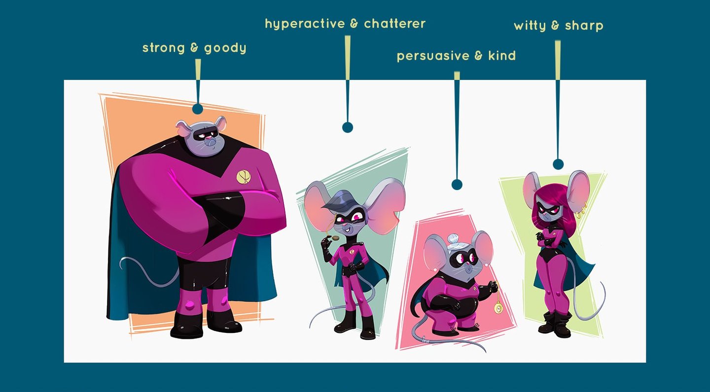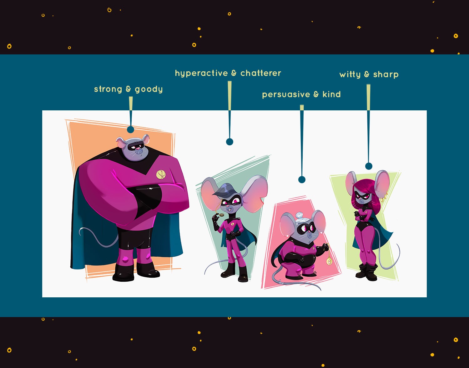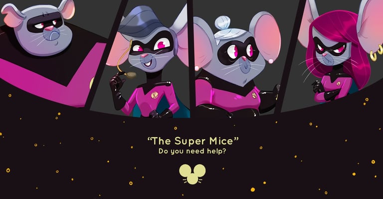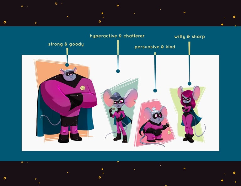 Personal project, 2021Character Design project about an unusual super spy mice family.